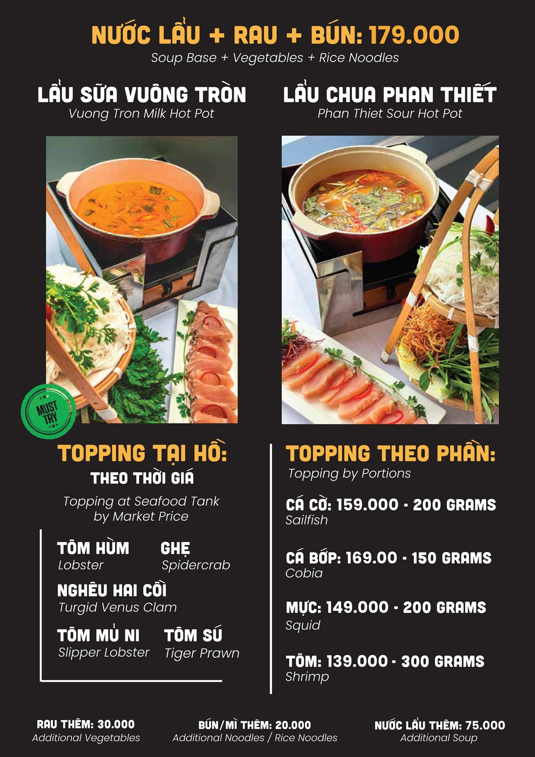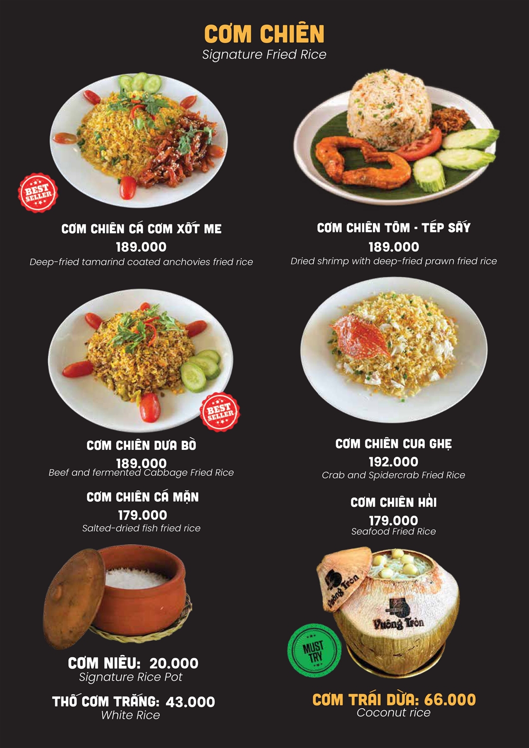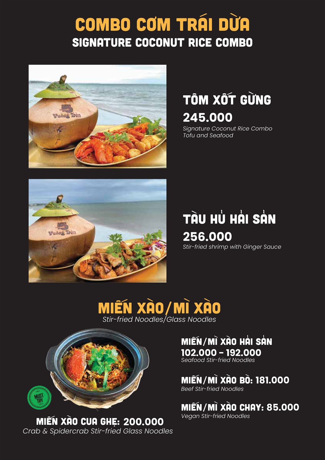 Khám phá thực đơn phong phú tại Nhà hàng Hải sản Cơm Niêu Vuông Tròn, nơi hội tụ tinh hoa ẩm thực biển và hương vị cơm niêu truyền thống. Từng món ăn được chế biến từ nguồn hải sản tươi sống, kết hợp gia vị chuẩn vị Việt, mang đến trải nghiệm ẩm thực trọn vẹn cho mọi thực khách. Dù là bữa ăn gia đình, tiệc liên hoan hay buổi hẹn hò lãng mạn, Vuông Tròn luôn có món ngon dành riêng cho bạn.